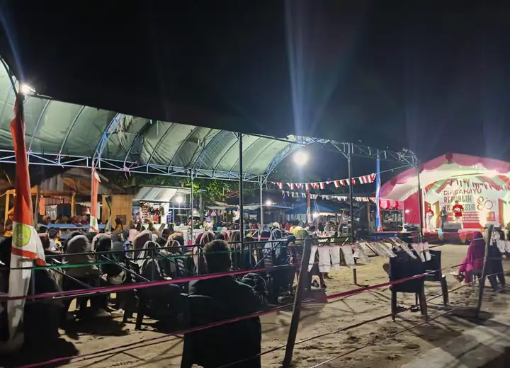 Kersik – Suasana malam di Pantai Biru, Desa Kersik, Kecamatan Marangkayu, semakin semarak dengan digelarnya lomba karaoke dangdut dalam rangka memperingati Hari Ulang Tahun (HUT) ke-80 Republik Indonesia. Kegiatan berlangsung selama empat malam, mulai 20 hingga 23 Agustus 2025, dan mendapat sambutan hangat dari masyarakat.